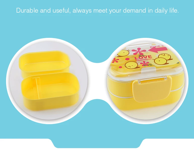2.Plastic bento lunch box is suitable for kids use with cute and smooth shape.