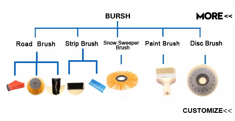 A4: We can produce many types of brush, like paint brush,floor scrubbing brushes,strip brush,snow removal brush,sweep road brush,airport runway brush and so on. More details, you can contact us any time. Also, we can produce as your picture and request.