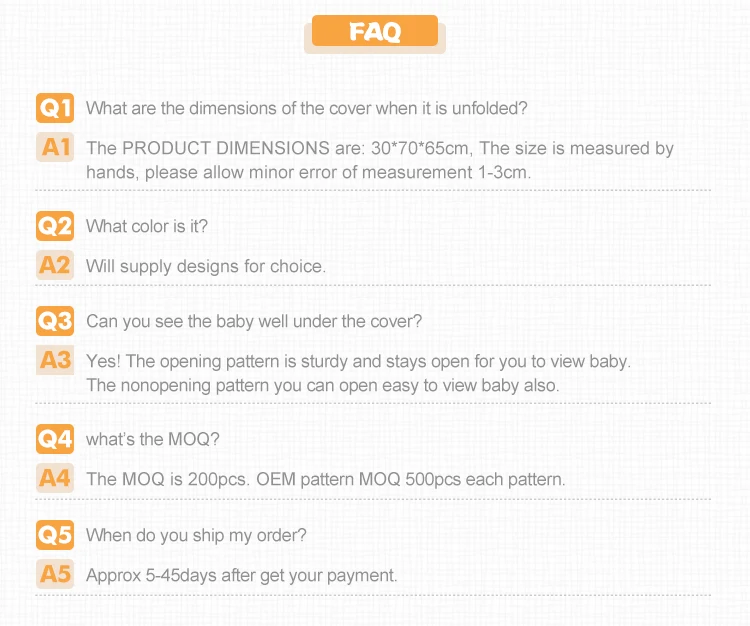 1.Provide Safe and Comfortable Environment 2.Convenient, Lightweight, and Breathable:The carseat cover is easy to use, and your baby can breathe easy. 3.Our infant car seat cover is made of soft, breathable, baby-friendly material to ensure your baby’s safety and comfort while he/she is sleeping or resting. 4.This car seat covers are so versatile, multi-functional and easy-to-use that they make an amazing gift for baby showers, moms-to-be or new moms. |
